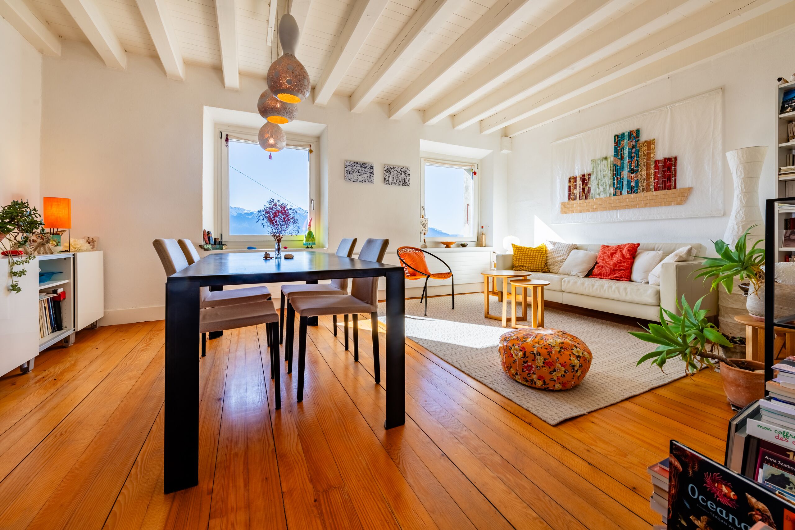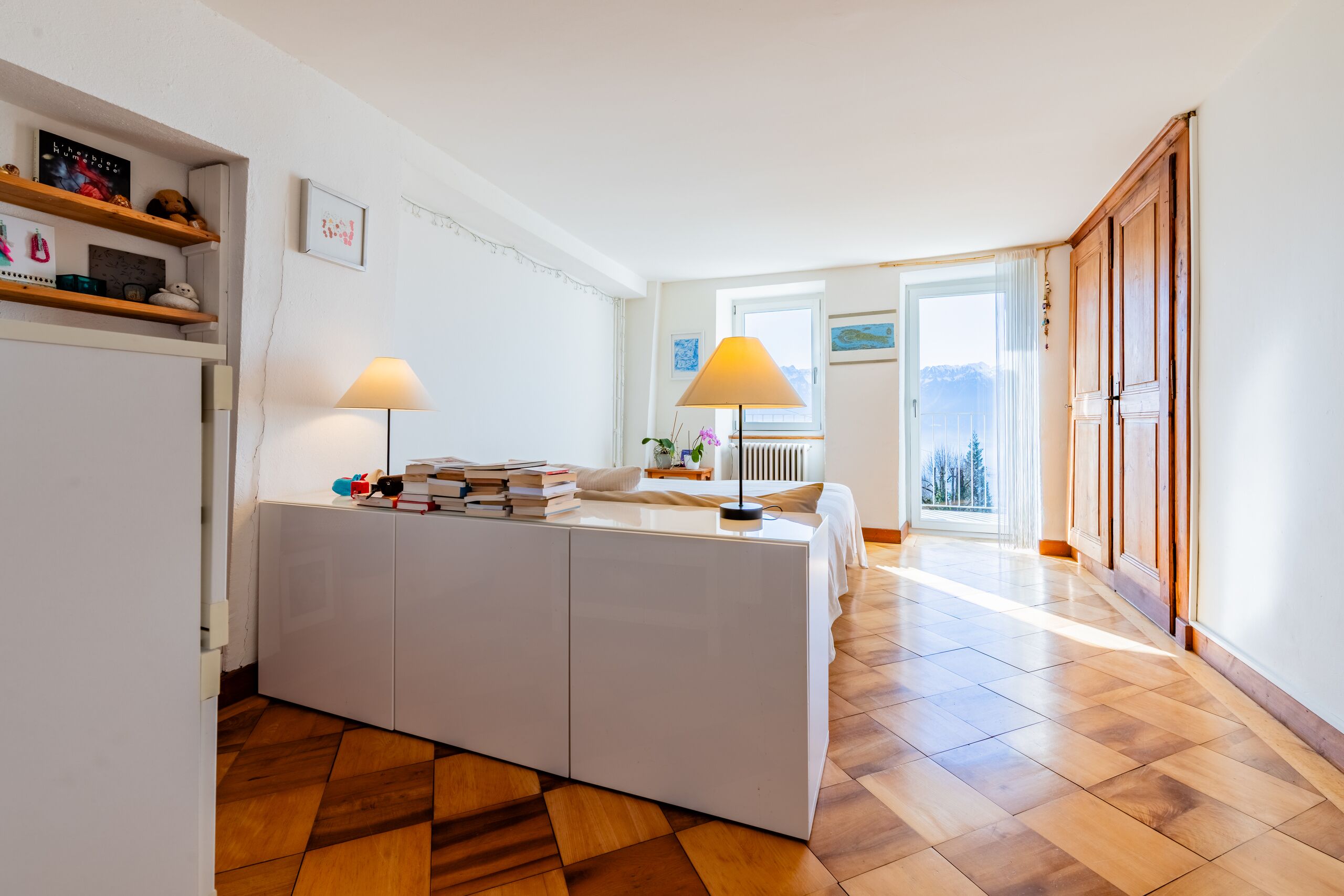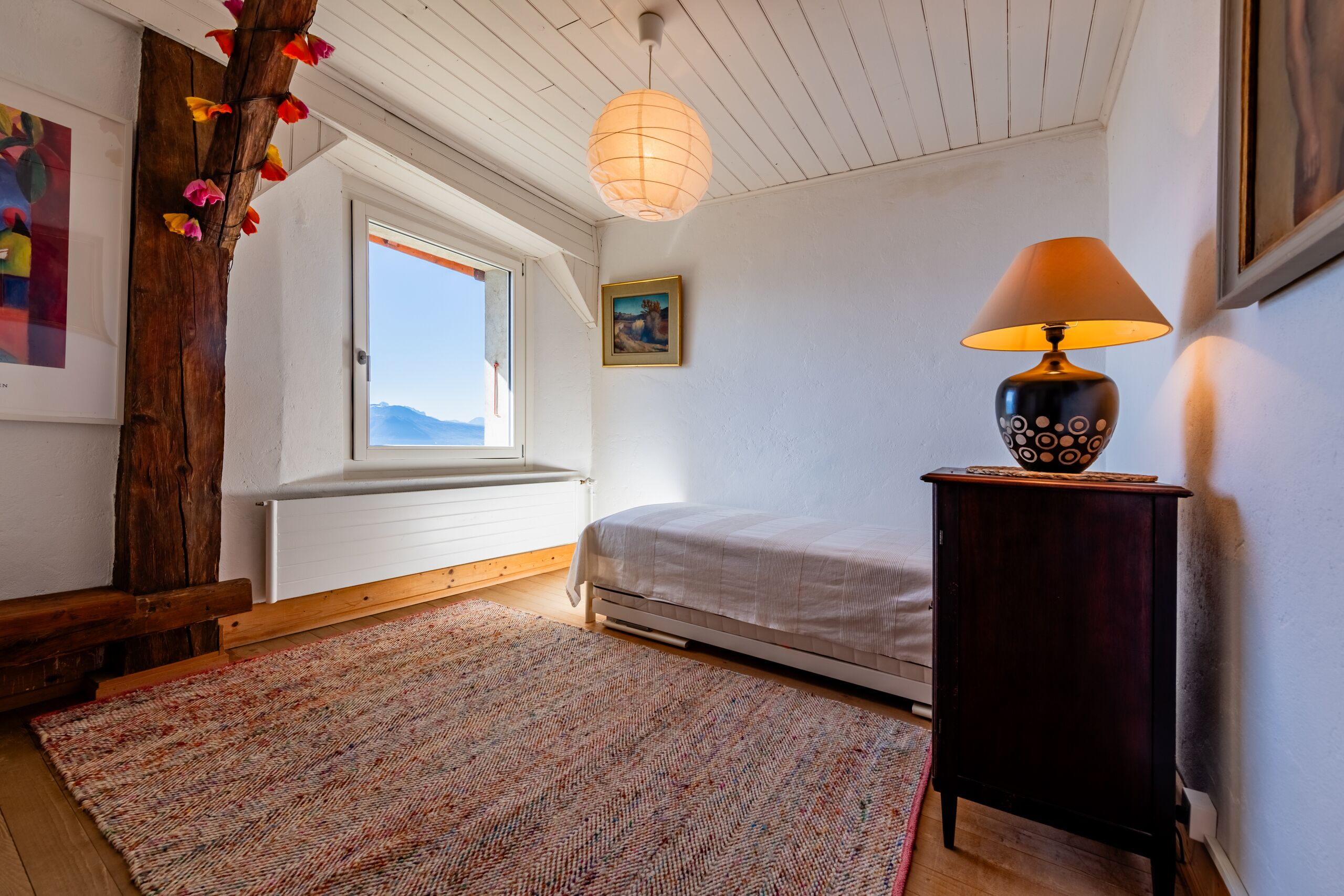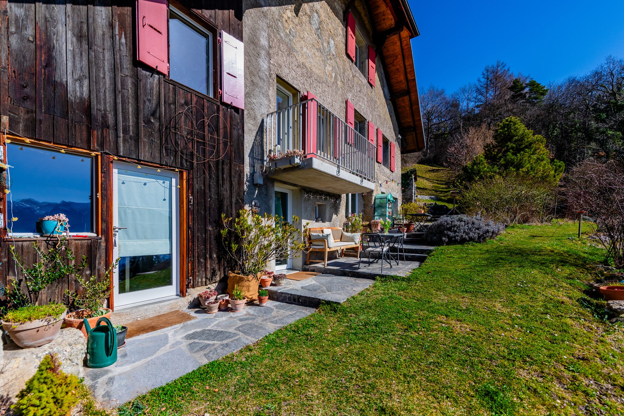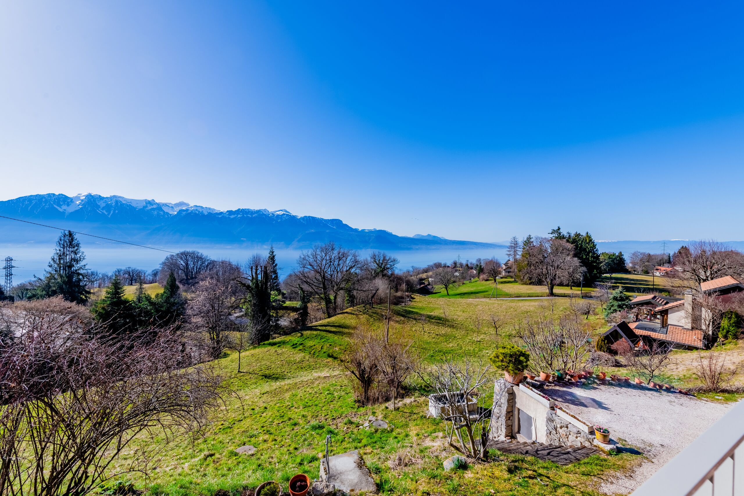 Orientée plein sud, elle offre une vue époustouflante sur le lac et les montagnes. Édifiée sur une grande parcelle arborisée, la propriété bénéficie d’un environnement rare et préservé, entre fleurs et lisière de forêt.